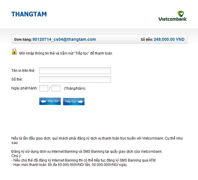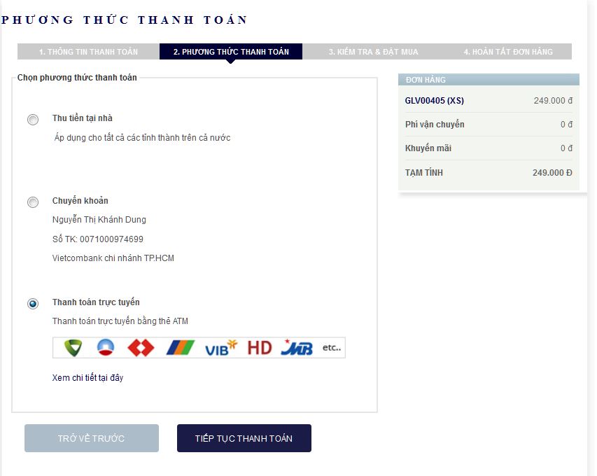 Cách 1: Thanh toán trước Online qua thẻ ATM nội địa