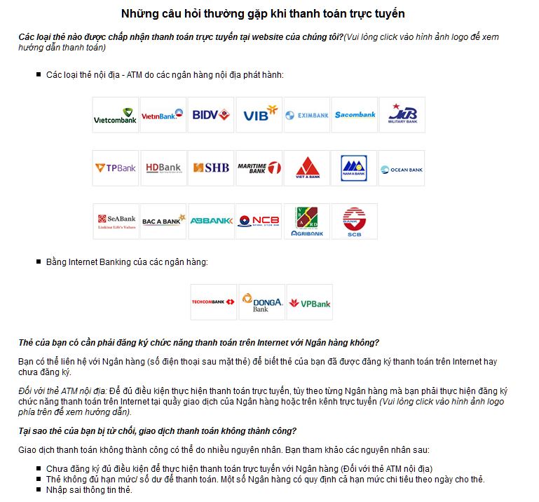 Để biết thông tin chi tiết về từng phương thức thanh toán.
